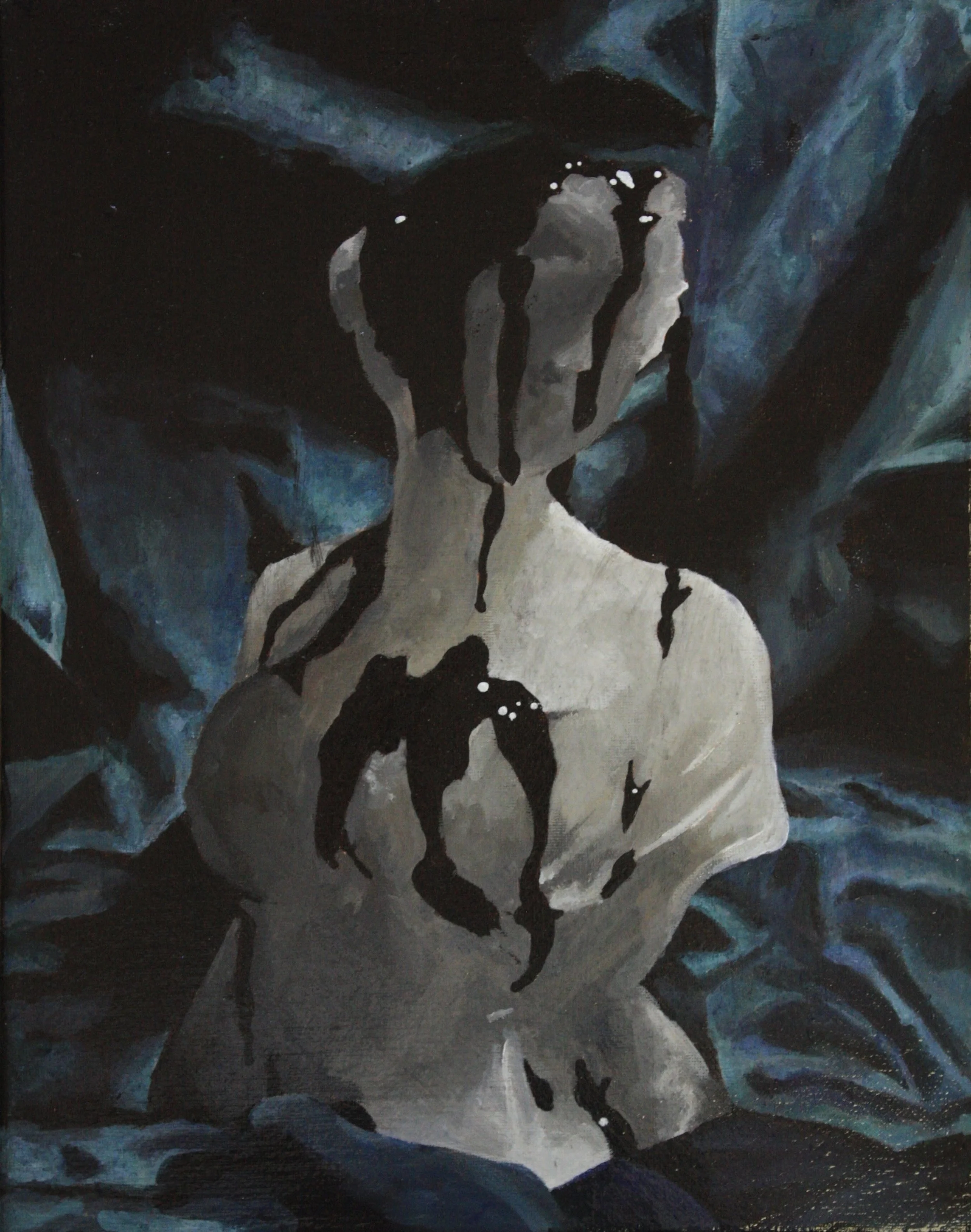 The Weight of Dreams is an acrylic painting on a 24x18 canvas. It draws inspiration from the aptly named song, “The Weight of Dreams” by the rock band Greta Van Fleet. All the song titles from the respective album strike me in a way that makes me itch to paint. The contents of the song invoke hope and loss, making the hairs on my arm stand at the drop.